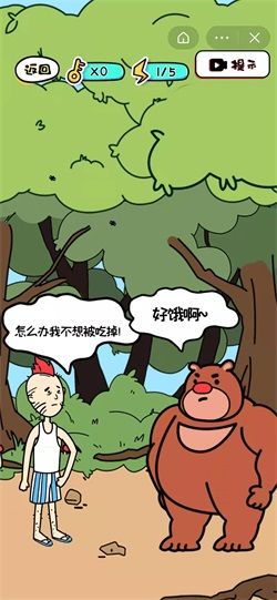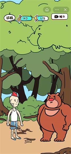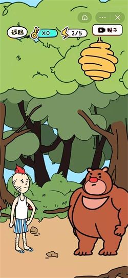 4、正常:咱們都知道熊喜歡持蜂蜜,點擊右上方的樹林,會發(fā)現(xiàn)有蜂蜜隱藏其中,點擊蜂巢即可成功脫險。