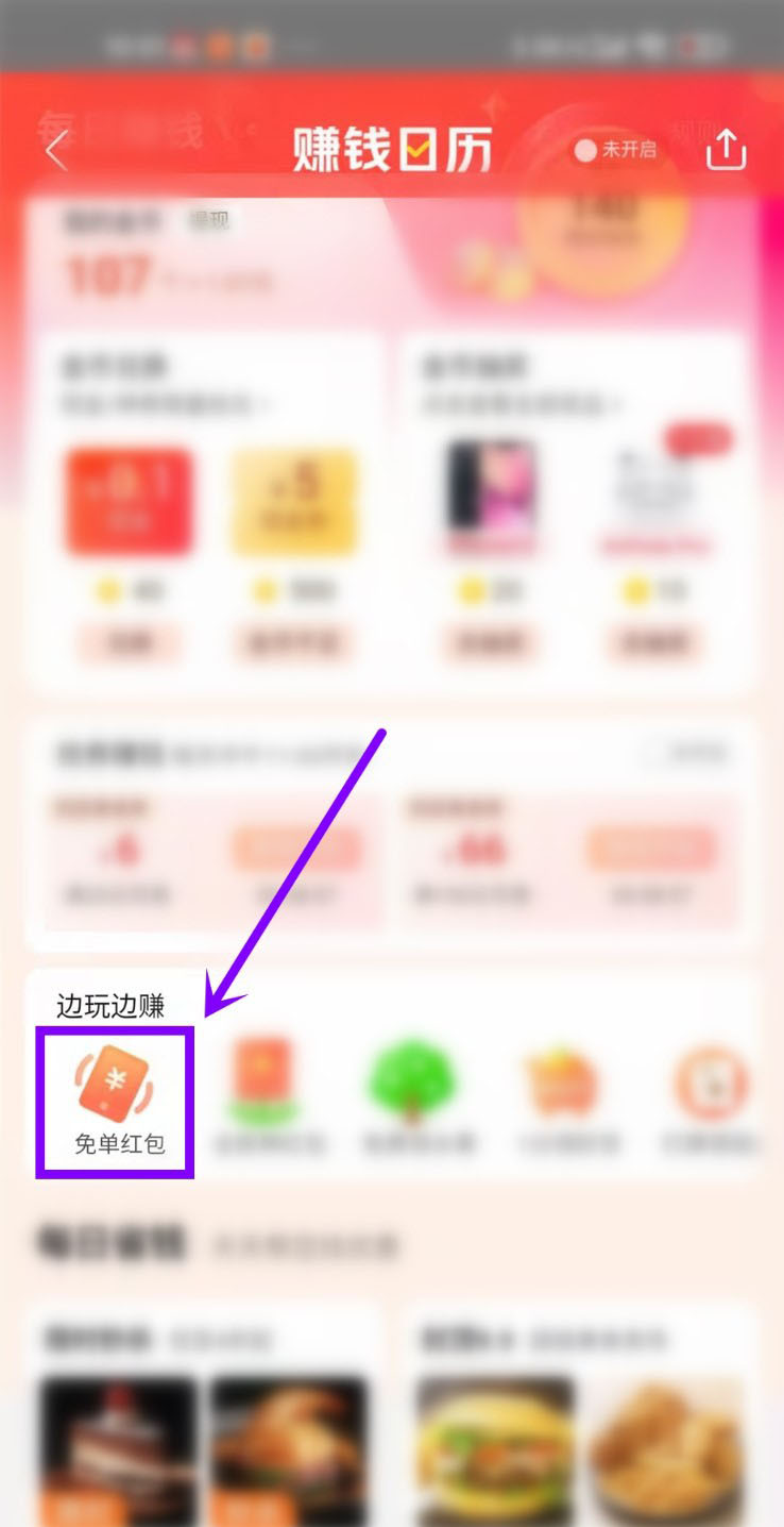 打開免單紅包活動。下拉頁面找到【邊玩邊賺】,點擊下面【免單紅包】。