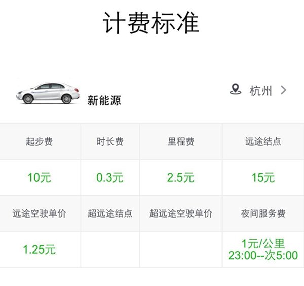 據(jù)天津曹操專車最新消息來看,曹超專車司機真實收入直接與曹操專車的收費標(biāo)準(zhǔn)掛鉤,以杭州曹操專車收費標(biāo)準(zhǔn)為例,新能源汽車起步費10元,時長費0.3元/分鐘,里程費2.5元/公里,遠途結(jié)點15元,遠途空駕單價1.25元,夜間(23:00-5:00)服務(wù)費1元/公里。
