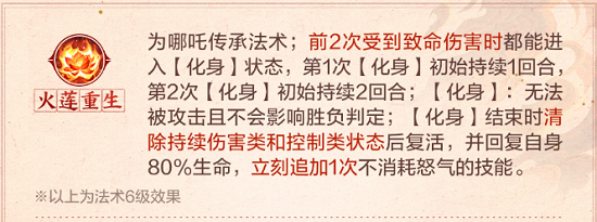 而哪吒的傳承法術(shù)“火蓮重生”,也可作為百眼魔君“死而不僵”的更佳替代,為許多角色提供了新的法術(shù)選擇!