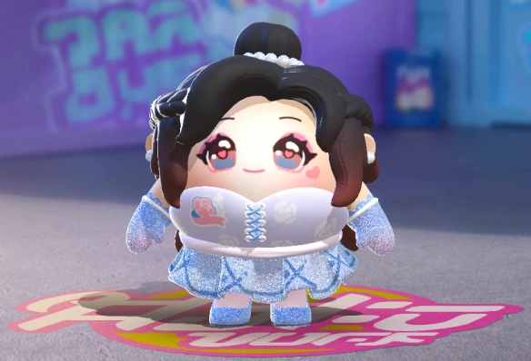 珍珠發(fā)圈丸子頭,長發(fā)微卷半披,蛋如其名,“糖心公主”外觀優(yōu)雅滿分。粉色眼影和面部小愛心彩繪俏皮可愛,蕾絲手套低調(diào)又不失奢華。水藍色抹胸長裙裙擺如群星閃耀,冰藍色水晶鞋也散發(fā)迷人光芒,穿上秒變童話里的公主殿下!