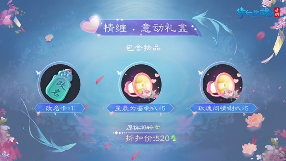 2月9日-2月14日活動(dòng)期間還有多重不同檔位禮盒限時(shí)上架!原價(jià)600靈玉的改名卡在禮包中購(gòu)買只需520靈玉,同時(shí)還送各種適合告白的浪漫喇叭!顛陰倒陽(yáng)丹、以愛之名附贈(zèng)各種花式喇叭,只要1314靈玉。此外,更有兩個(gè)以愛之名只需1314靈玉即可入手!小伙伴們快趁折扣收入囊中,將此情誼滿滿的禮盒贈(zèng)予戀人以示愛意。