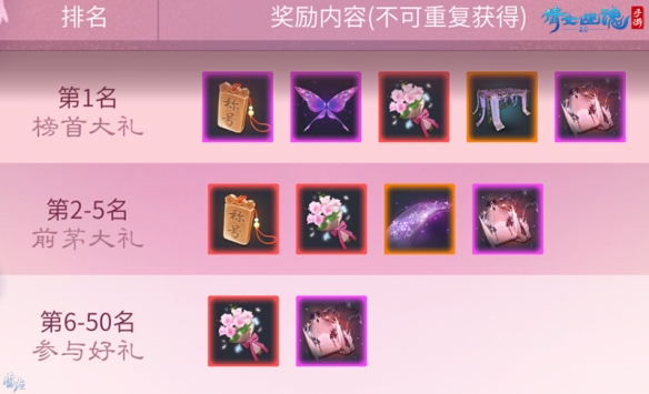 【一往情深】活動(dòng)排名獎(jiǎng)勵(lì)