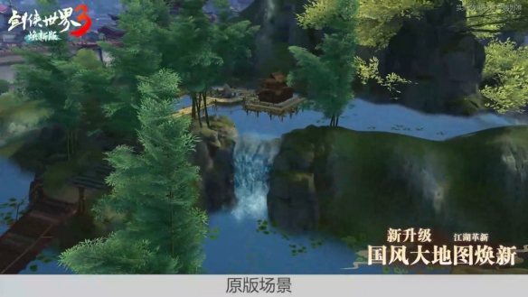 【更新后】:建筑模型更加精細(xì),由原來(lái)的單一茅屋升級(jí)為復(fù)合式的竹制小寨,層次更加豐富,增加各位少俠可探索的空間。