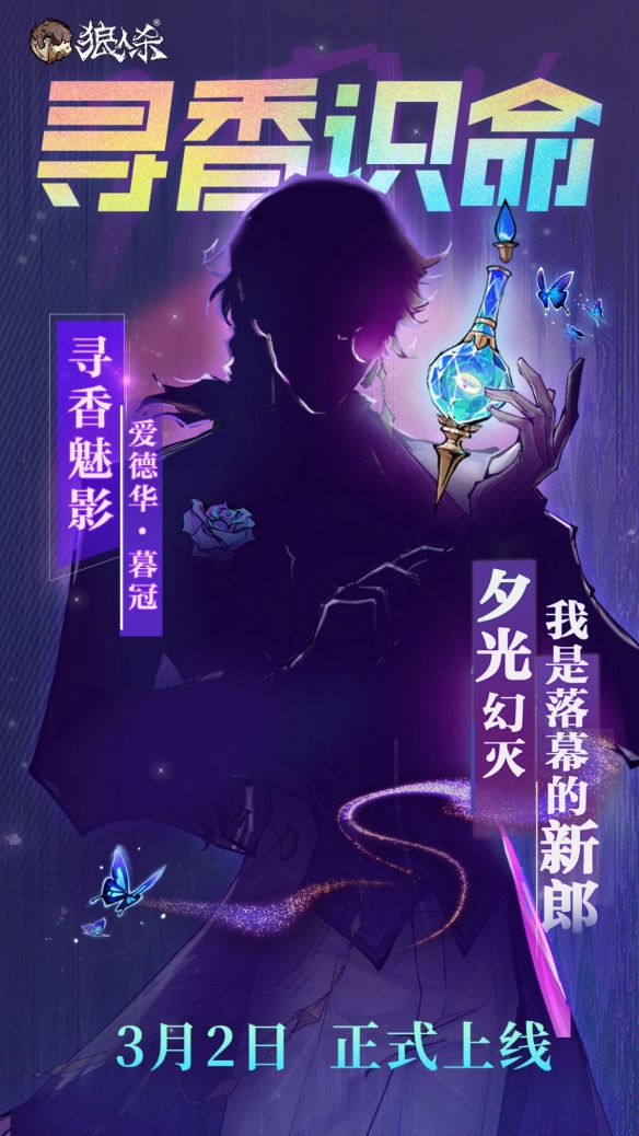 3月2日,狼人殺全新板子“尋香識命”正式上線,新角色究竟有著怎樣的技能,又有著怎樣的形象呢?更多資訊,敬請期待!