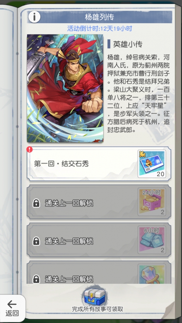在游戲更新后,浣熊鎮(zhèn)圖書(shū)館將會(huì)正式收藏《楊雄列傳》的精彩故事小集,故事中將會(huì)講述楊雄如何成為梁山好漢的傳奇故事哦。