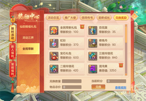 全民帶新活動全服火熱開啟,叫上你的好友們一起闖蕩三界換好禮吧!推薦新人游玩神武,新人達(dá)到一定活躍后自己可獲得帶新積分。