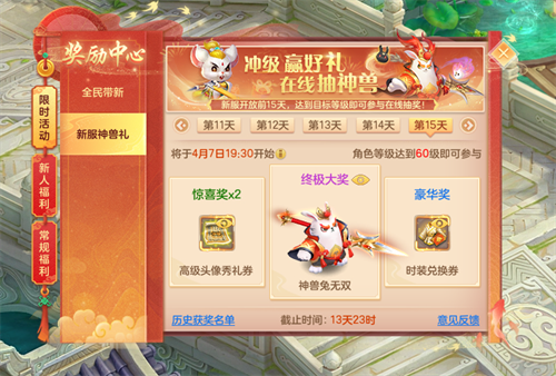 現(xiàn)在回歸少俠將有新萌寵鹿小淘的陪伴,它將和少俠一起歷練成長,還可幫助少俠回溯大量獎勵。為了讓久別三界的少俠暢玩神武,觸發(fā)回歸狀態(tài)的少俠在登錄時就將獲贈一套高屬性、攜帶特技的強(qiáng)力裝備和攜帶高級技能的強(qiáng)力寵物,日常挑戰(zhàn)暢通無阻,不必?fù)?dān)心大幅落后。
