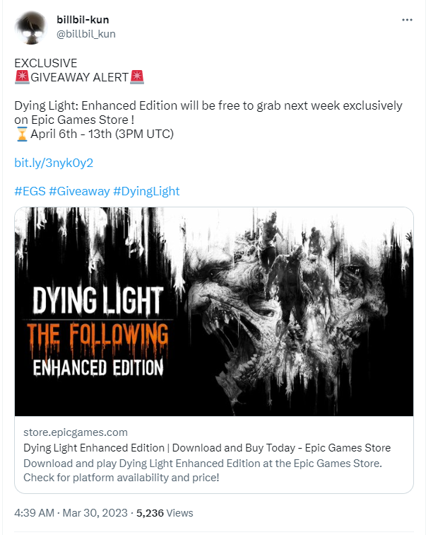 今日(3月30日),知名游戲爆料人billbil-kun在推特上發(fā)文表示,下周Epic的喜加一游戲?yàn)椤断诺墓饷ⅰ吩鰪?qiáng)版!領(lǐng)取時(shí)間為4月6日~4月13日。
