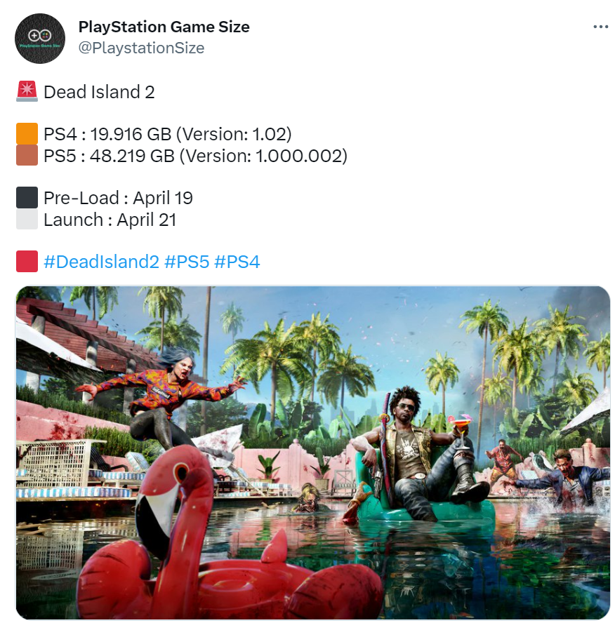 《死亡島2》即將在4月21日正式發(fā)售,游戲目前曝光了PS5/PS4游戲容量其中,PS5版本相較PS4版本多出了大概30G的大小,該作預計會在4月19日開啟預載,如果有玩家打算提前準備的話可以了解一下。