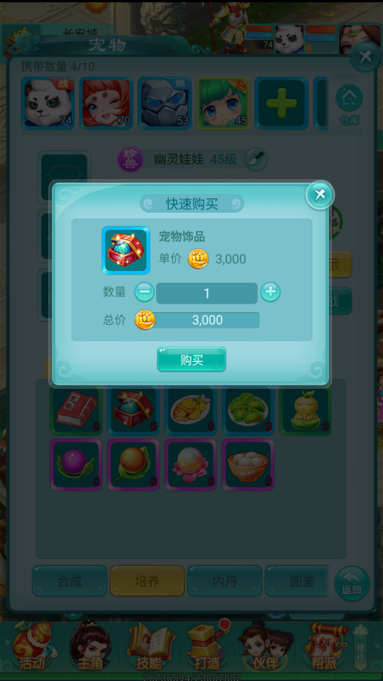 首先,寵物飾品的最大用途就是能額外提升寵物的全體資質(zhì),并且不是能提升一次,而是好幾次!在寵物的培養(yǎng)界面,你可以發(fā)現(xiàn)一個(gè)道具“寵物飾品”,3000金幣就可以購(gòu)買(mǎi)一個(gè)。