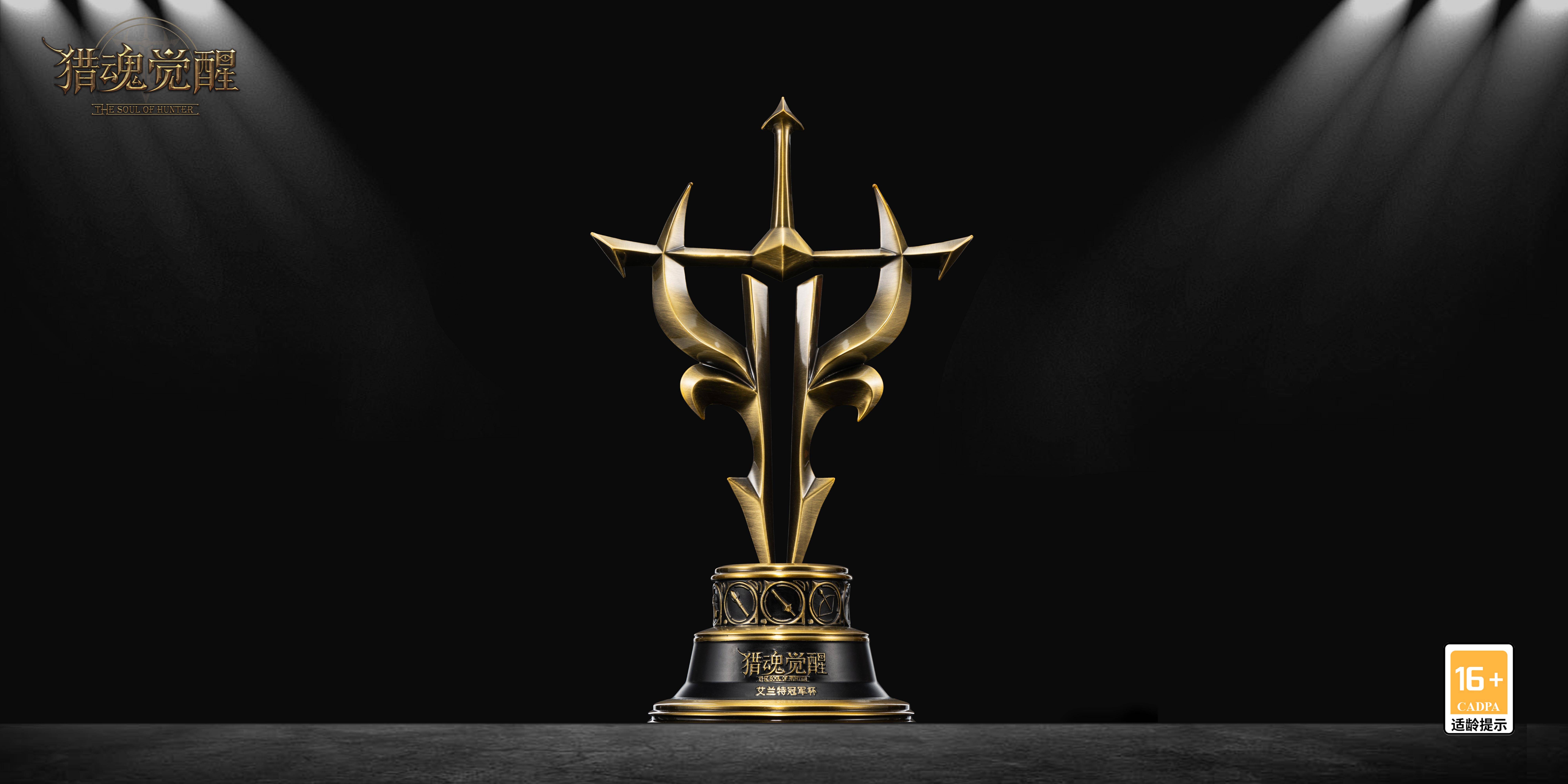 榮耀獎杯,淬煉鋒芒!實體金屬打造的冠軍獎杯可謂分量沉甸甸,上半部分以《獵魂覺醒》游戲logo為形鑄造,象征以游騎兵之名,捍衛(wèi)王城榮光;九大武器圖案雕刻在獎杯下部的深色柱體底座之上,再現(xiàn)游騎兵強者爭鋒盛景。獎杯整體猶如一只巨鳥在浩渺的藍天中展翅飛翔,散發(fā)無盡光芒!