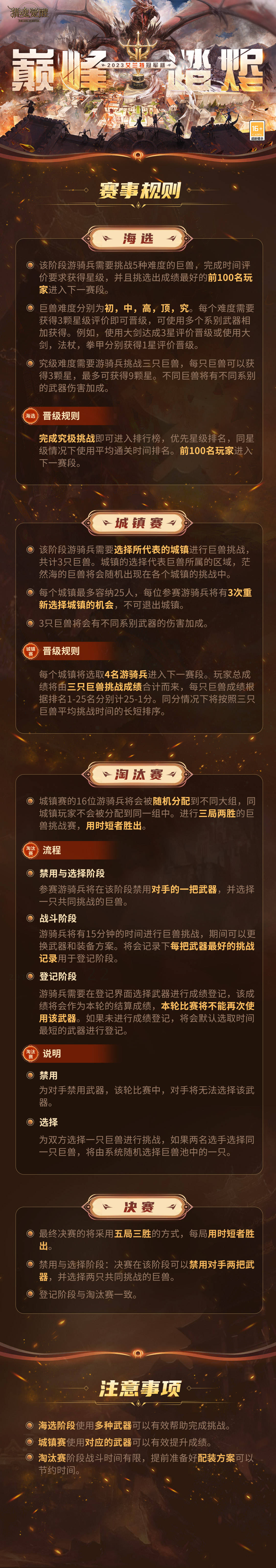 相信有志爭雄的強者們早已整裝待發(fā),決心向總冠軍發(fā)起最有力的沖擊,期待各位的驚艷亮相!此外, 還有以下艾蘭特冠軍杯參賽小貼士,也請各位游騎兵收下: