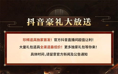 421新大區(qū)開放后,《大唐無雙》手游還在首度開放抖音平臺直播活動!據(jù)悉,全場最低3折起!各種獨家禮包、珍稀道具、限時折扣統(tǒng)統(tǒng)都有,具體開播時間,敬請留意官方公告和新聞通知哦!