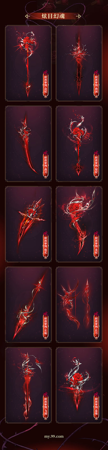 除此之外,全新熾夜審判系列幻魂同步上線,同樣的紅薔薇主題讓各大武器裝備著上了冷酷血色,在黑夜中暗暗發(fā)光,更顯別樣炫目。