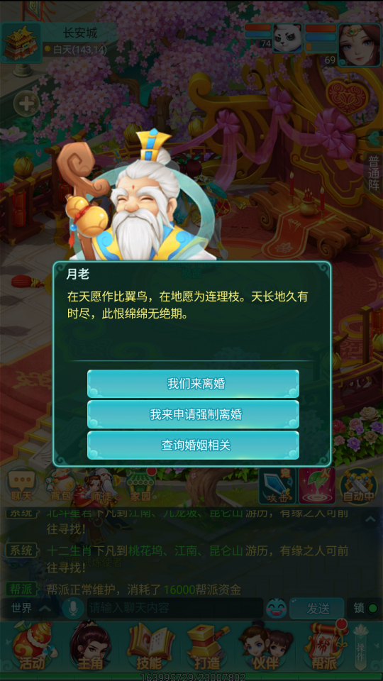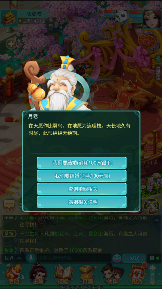 月老的首要職責(zé)就是主持結(jié)婚事宜,包括置辦婚禮現(xiàn)場(chǎng)和當(dāng)證婚人。少俠們結(jié)婚需要花費(fèi)100W銀幣或100元寶,這筆錢并不是給月老的好處費(fèi),而是主要花在場(chǎng)地的布設(shè)、煙花爆竹的置備上的。