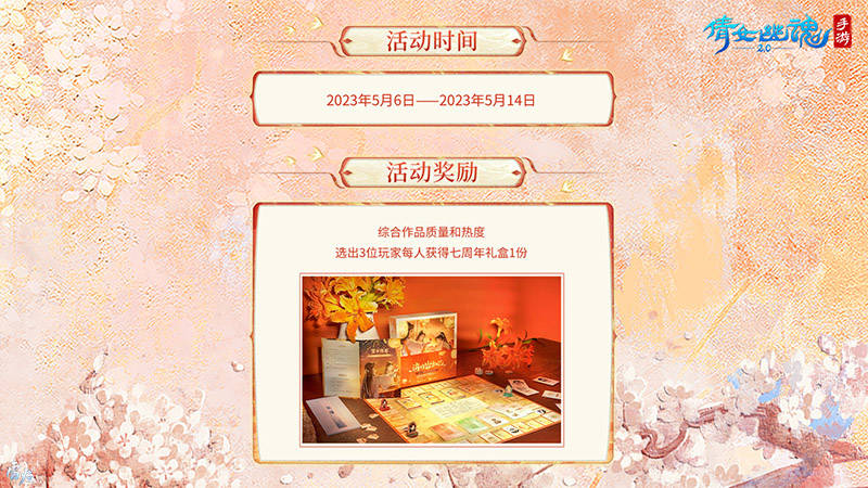 小紅書【知己故事】征集活動(dòng)5月6日-5月13日限時(shí)開啟!在七周年到來(lái)之際,回顧與知己一同走過(guò)的時(shí)光。無(wú)論是相隔千里、長(zhǎng)久陪伴的親密好友,亦或是一段久別重逢的珍貴回憶。不限于游戲內(nèi)、不限于同性異性,生活中圍繞倩女所產(chǎn)生的一切知己情誼都可以作為內(nèi)容分享!相信三界小伙伴們與知己間定有不少珍貴故事可以講述。