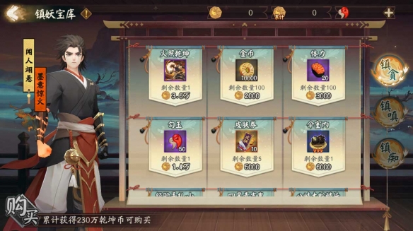 可使用收集的「乾坤幣」兌換活動(dòng)插畫(huà)、聞人翊懸·印花、聞人翊懸皮膚·墨意驚火、動(dòng)態(tài)頭像框「松煙山霧·義行」、御行達(dá)摩、SP/SSR式神召喚券等獎(jiǎng)勵(lì)。
