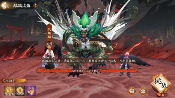 麒麟為霧山問(wèn)道之人設(shè)下試煉,通關(guān)后可獲取「乾坤幣」、「小紙人·聞人翊懸」與「焰縈墨意禮盒」(內(nèi)含聞人翊懸專屬姿度「墨焰」「水墨清意」「潑色乾坤」)等豐厚獎(jiǎng)勵(lì)??赏ㄟ^(guò)激活五行機(jī)關(guān),削弱當(dāng)前關(guān)卡麒麟的技能,助力完成試煉。