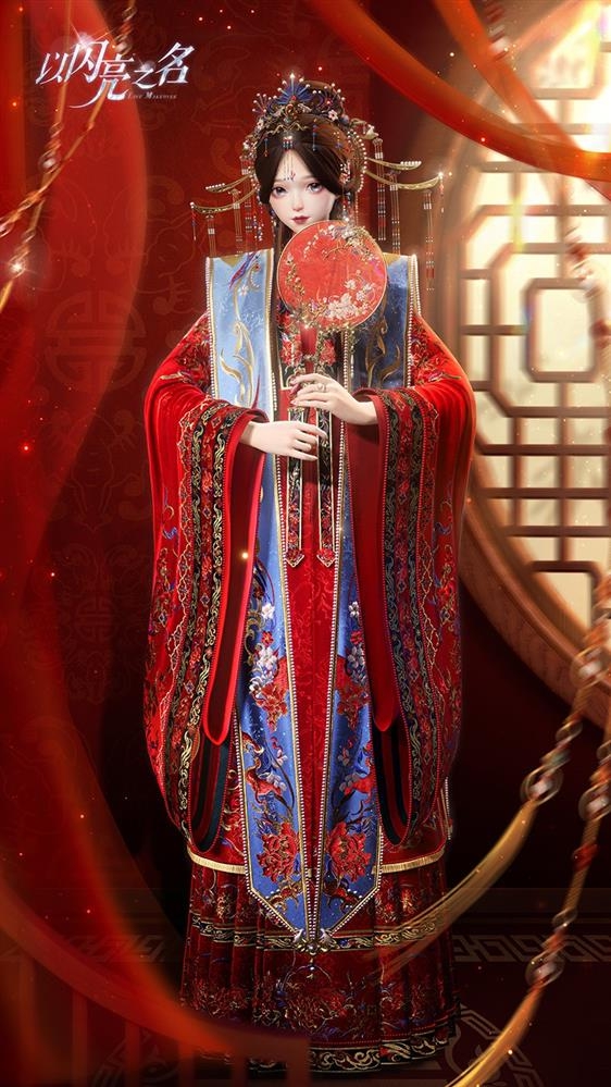 「鸞儔夙緣」以中式婚服鳳冠霞帔為主基調(diào),寓意著吉祥幸福。鳳冠采用金屬作為主要材質(zhì),整體呈現(xiàn)出華麗、精致的外觀。流蘇與燒藍(lán)工藝的搭配,更添典雅與華麗。霞帔是以藍(lán)色為主色調(diào),與紅色的主色調(diào)形成鮮明對(duì)比,更加吸睛奪目。利用刺繡、緙絲和妝花等工藝,使用了金絲、銀絲等亮麗的線材進(jìn)行刺繡,輔以珍珠點(diǎn)綴緣邊,更添華麗感和精致感。光明圣潔、暗黑魅惑、又或是熱烈華麗,風(fēng)格百變。這套時(shí)裝也公布了細(xì)節(jié)、染色效果圖,官方釋放的黑金、藍(lán)白染色效果圖也廣受玩家好評(píng)。