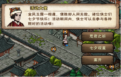 七夕小支線將在節(jié)日當(dāng)天開啟,各位少俠可前往洛陽(yáng)活動(dòng)大使處了解詳情,在享受七夕佳節(jié)的同時(shí)贏取獎(jiǎng)勵(lì)。