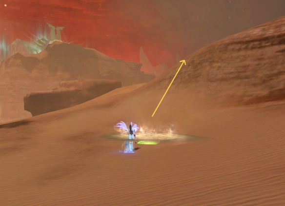 領(lǐng)完獎勵后往東北方向上坡,前方不遠處就是下一個沙丘的位置(坐標(biāo)為東1581,南782)