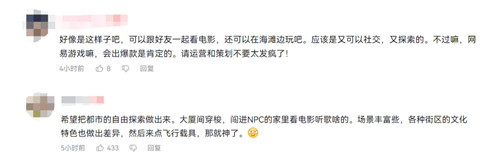 而《代號:無限大》PV下的觀眾們似乎有點不太一樣,他們的評論比起常見的分析,卻更在意都市這一場景,對游戲內都市活動這一通常來說“無關緊要”的內容期待更高。