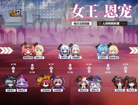 活動期間,在公主祈愿中,每日都有不同的UP裝備,詳情如下: