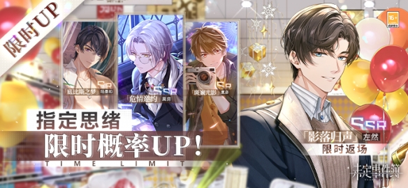 活動期間,輪替女神之影中,左然SSR【影落歸聲】、莫弈SSR【危情邀約】、夏彥SR【斑斕光影】、陸景和SR【底比斯之夢】獲得概率提升。