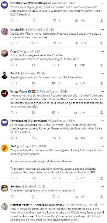 有玩家希望R星能復(fù)活放棄的游戲《特工》,也有玩家希望R星能開(kāi)發(fā)一個(gè)中世紀(jì)或海盜主題的游戲。