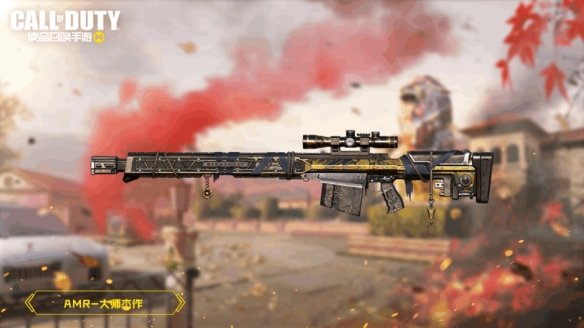AMR-大師杰作采用了暗金色的配色,并鐫刻著精致的花紋,展現(xiàn)出一種低調(diào)但又不失尊貴的氣質(zhì),槍身纏繞著的紫褐色繃帶與其懸掛著的兩枚做工精細的吊墜,流露出古老神秘的氣息。