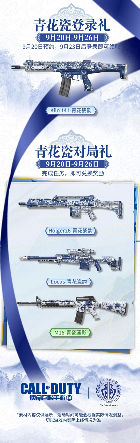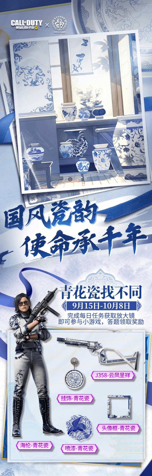 這次,《使命召喚手游》X《高安元青花博物館》即將展開文創(chuàng)合作,將精美的青花瓷帶到游戲當(dāng)中,與戰(zhàn)士們一起感受“純凈高雅”的青瓷極品!