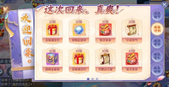 除了豐厚的福利的之外!萬人服還有專屬的經(jīng)驗追趕機制,想象一下,開局就穿著帥氣的紫裝,全身滿寶石,帶著一群小伙伴們馳騁在桃花源中,是不是超級拉風(fēng)?