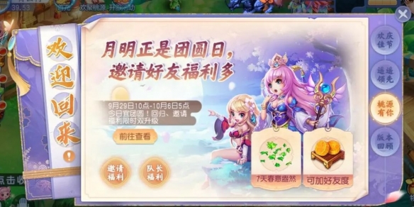 回歸、邀請福利限時雙升級啦,還不趕緊帶上你的小伙伴們暢游桃花源。