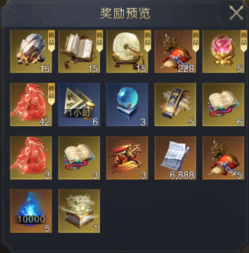 主公可選擇精鐵、演武文書等作為極品獎勵。