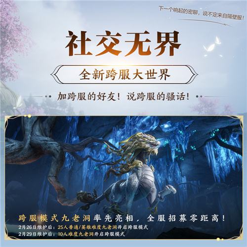 全服騷話隨心復(fù)制,跨服聊天不是夢,全新跨服大世界徹底突破區(qū)服間的阻礙,實(shí)現(xiàn)服務(wù)器之間的“社交無界”!歷時(shí)半年完成的浩大工程,打破服務(wù)器壁壘,支持無縫社交,跨服好友和跨服聊天給各大服務(wù)器提供進(jìn)一步的交流空間,跨服秘境九老洞率先亮相,帶來全新體驗(yàn)!只要身處同一跨服房間,便可在秘境中并肩作戰(zhàn)!人數(shù)較少的服務(wù)器不必?fù)?dān)心沒人一同復(fù)制說騷話,回歸后與親友不同服也能一起玩,“跨服”存知己,天涯若比鄰!