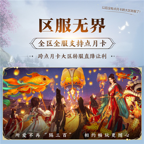 全區(qū)服支持點(diǎn)月卡現(xiàn)已上線,打響深化點(diǎn)月收費(fèi)第一槍!和不同計(jì)費(fèi)模式間的轉(zhuǎn)區(qū)服限制說拜拜,可攜帶物品更加多樣,讓俠士們能夠更加便利地尋訪親友!同一種模式,同一套價(jià)格,不再加收所有跨大區(qū)轉(zhuǎn)服的額外手續(xù)費(fèi),實(shí)現(xiàn)同一個(gè)武俠大世界!