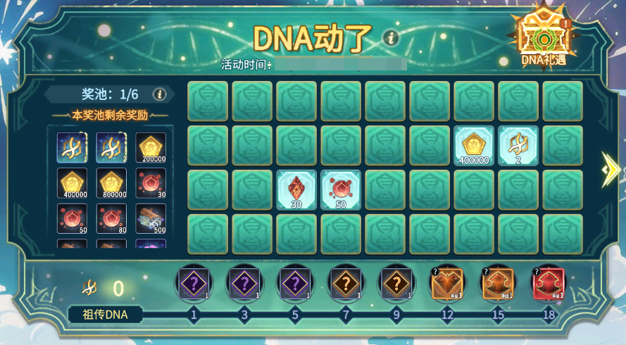 翻格子的DNA動了!活動期間,每日可免費領(lǐng)取“洞心鏡”,通過累計翻牌次數(shù)或購買可獲得更多洞心鏡。消耗洞心鏡可翻開任意1個格子。翻出同一頁內(nèi)兩個相同圖案的格子,即可獲得該圖案對應(yīng)的獎勵!該活動總共有六頁獎池,探索者可以隨時自由選擇任一獎池進行翻牌操作。