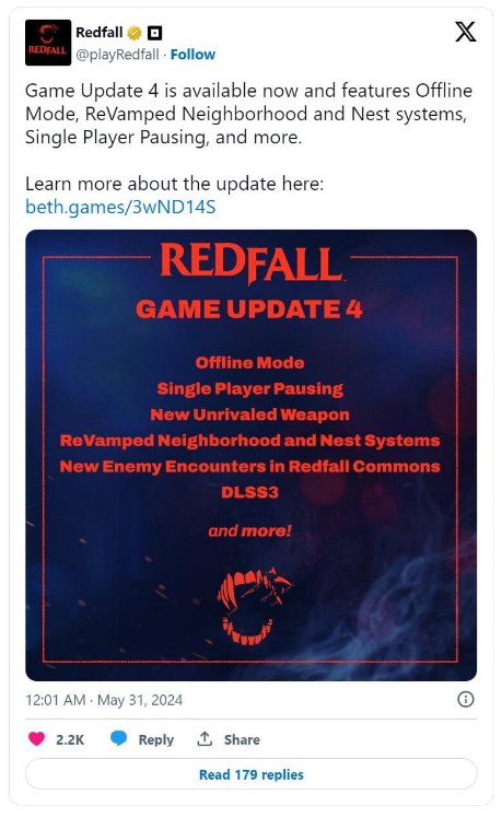 微軟宣布計(jì)劃關(guān)閉《紅霞島》開(kāi)發(fā)工作室 Arkane Austin 之后,曾有消息稱(chēng)這款游戲的最終更新補(bǔ)丁也會(huì)胎死腹中。
