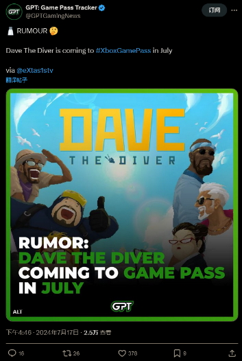 eXtas1s 是相對來說比較可信任的 Xbox 游戲泄密消息來源,此前也確認(rèn)了《現(xiàn)代戰(zhàn)爭3》將加入 XGP 的消息?!稘撍畣T戴夫》非常成功,很受玩家的喜愛,在發(fā)布后還獲得了多項大獎,它的加入無疑是一大助力,對于微軟來說也是非常合理的策略。而且最近這款游戲才剛剛通過 PS+ 免費(fèi)提供給 PS5 玩家體驗。
